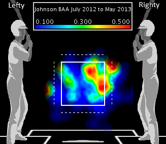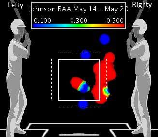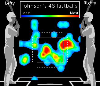 Johnson has thrown 48 fastballs over the last three games and batters are sitting on the pitch going 8-for-11 knowing Johnson has trouble locating it as you can see in the heat map below.
