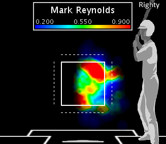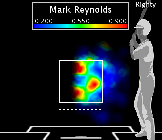 Reynolds was a beast versus pitches thrown to the inner half of the plate in 2011, posting the eighth-best slugging percentage (.659) among qualified batters. But that figure declined to .575 in 2012, and just .398 this past season. Here's another way of looking at it: Reynolds crushed inside pitches like Jose Bautista and David Ortiz back in '11. In 2013, though? He barely outslugged waterbug shortstops Elvis Andrus and Erick Aybar.