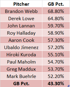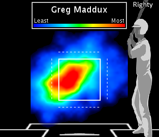 Mad Dog knows that chicks dig the long ball, but he was notoriously stingy in giving them up. He surrendered just 0.6 home runs per nine innings pitched, second-lowest among starters who have logged 3,000+ innings since his big league debut in 1986 (Kevin Brown is first, at 0.57 HR/9). During his swan song season, Maddux still ranked in the top ten among starters in fastball ground ball rate: