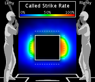 League average called strike rate on fastballs thrown outside of the strike zone, 2008