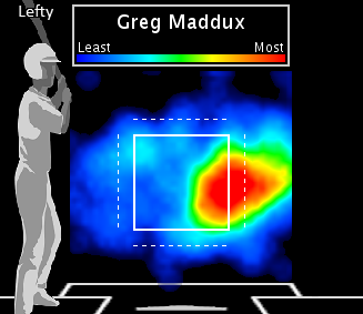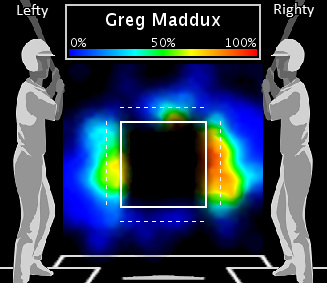 Everyone knows that Maddux threw a ton of strikes -- you don't compile the best career strikeout-to-walk ratio (3.37) this side of Mussina, Cy Young and Curt Schilling by nibbling. But Maddux threw quality strikes as well, painting the corners and rarely missing his spots. Take a look at his fastball pitch location against lefties and righties in '08: