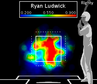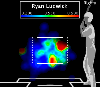 Ludwick's slugging percentage by pitch location, 2013