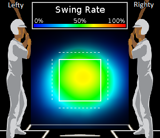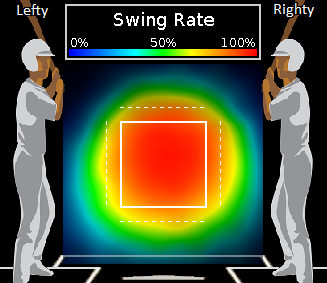 Batters swing about 39 percent of the time overall with less than two strikes, chasing 22 percent of pitches out of the zone. With two strikes, however....