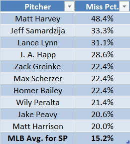 Highest fastball miss rate among MLB starters (min. 100 thrown)