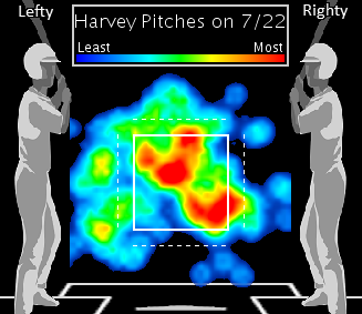 - Yesterday, Harvey, who appears potentially no-hittable in each start, pitched seven shutout innings allowing three hits and walking no one.