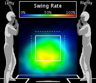 Hitters' swing rate by pitch location vs. Wainwright's curveball