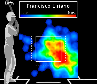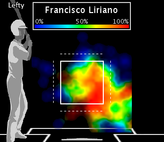 On top of pulling the trigger less frequently (37.0%) than any other qualified batter last season, Trout posted baseball's third-highest on-base percentrage (.432), as previously noted. But why are these two metrics noteworthy? As we see from the graph to the right, Trout -- along with Votto's 38.9% swing rate and .435 OBP -- was essentially the most efficient hitter in baseball last season at getting on base while still hacking less frequently than any other batter. Cabrera posted a league-best .442 OBP last season, but offered at 49.7% of all offerings thrown to him. Thus, Trout was much more efficient at finding ways to get on base than Cabrera, which shows he employs a more refined offensive approach.