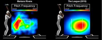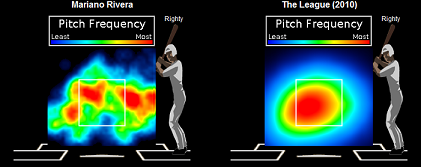 As the heatmap below shows, Mariano Rivera has an amazing ability to command the strike zone.