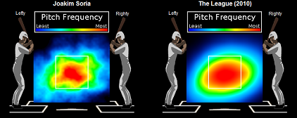 Joakim Soria's 2010 Pitch Frequency (1086 pitches) vs. All 2010 Major League RHP