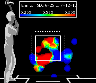 Puig was ridiculously productive in June, of course, as seemingly every ball he put in play evaded leather. He walked in just 3.7 percent of his plate appearances, however -- fine if you're racking up hits like Teddy Ballgame and Ty Cobb, but problematic otherwise. To his credit, Puig quickly began to shrink his eyes-to-ankles strike. He chased fewer inside pitches out of the zone in July, August and September.